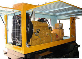 竞秀柴油发电机组/移动柴油发电机组设计独具创新,机动性高、重心低、制动安全、制造精良、外形美观。 竞秀拖车车架采用槽梁焊接成框架结构,节点选择合理、强度高、刚性好;同时装有钢板弹簧悬架结构;拖车采用高度可调节插销式牵引架,适用于各种高度牵引车;采用圆形钢管焊接直通式车轴,结构紧凑,安全可靠;车架四角设有机械式支撑装置,配备惯性行车制动、驻车制动和脱离应急制动,确保机组在各种状况下的安全;车架前端设有支撑轮,具备承受机组垂直载荷的功能的同时还具备导向功能;整车配备转向和刹车指示灯,同时装有尾灯标准插头
